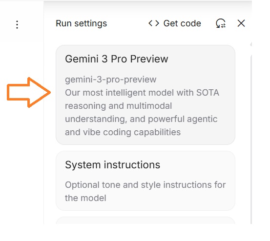 Pro系モデル(例:Gemini Pro / Gemini 3 Pro Preview)を選択します。
