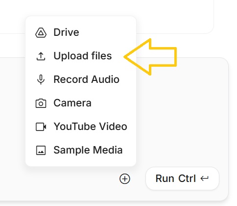 入力欄横の「+」から「Upload from Computer」を選び、PDFをアップロードします。