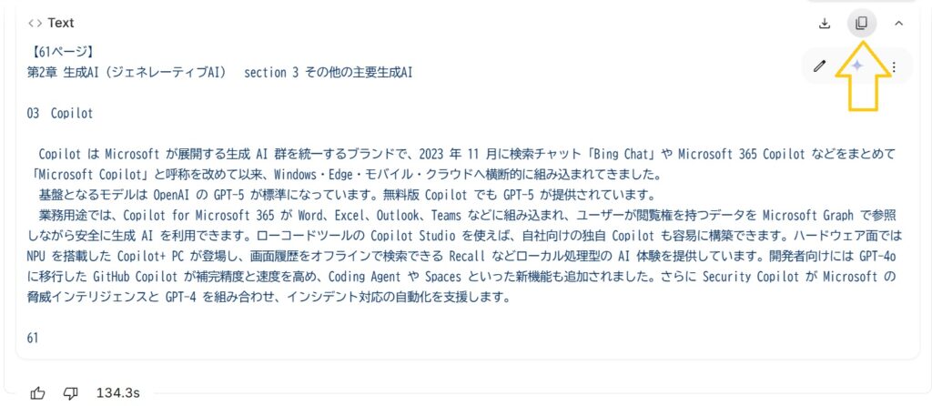 チャット欄のコードボックスにOCR後の文章が生成されたら、その文章をテキストエディタ等に貼り付けて保存してください。