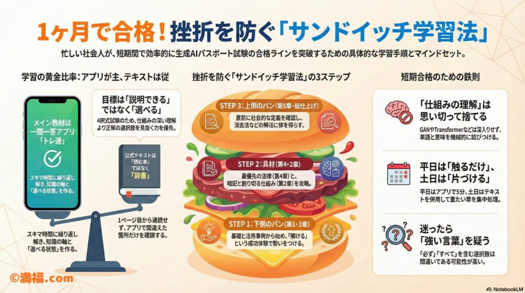 この「サンドイッチ学習法」で、無理なく現実的に、合格ラインを越えていきましょう。
