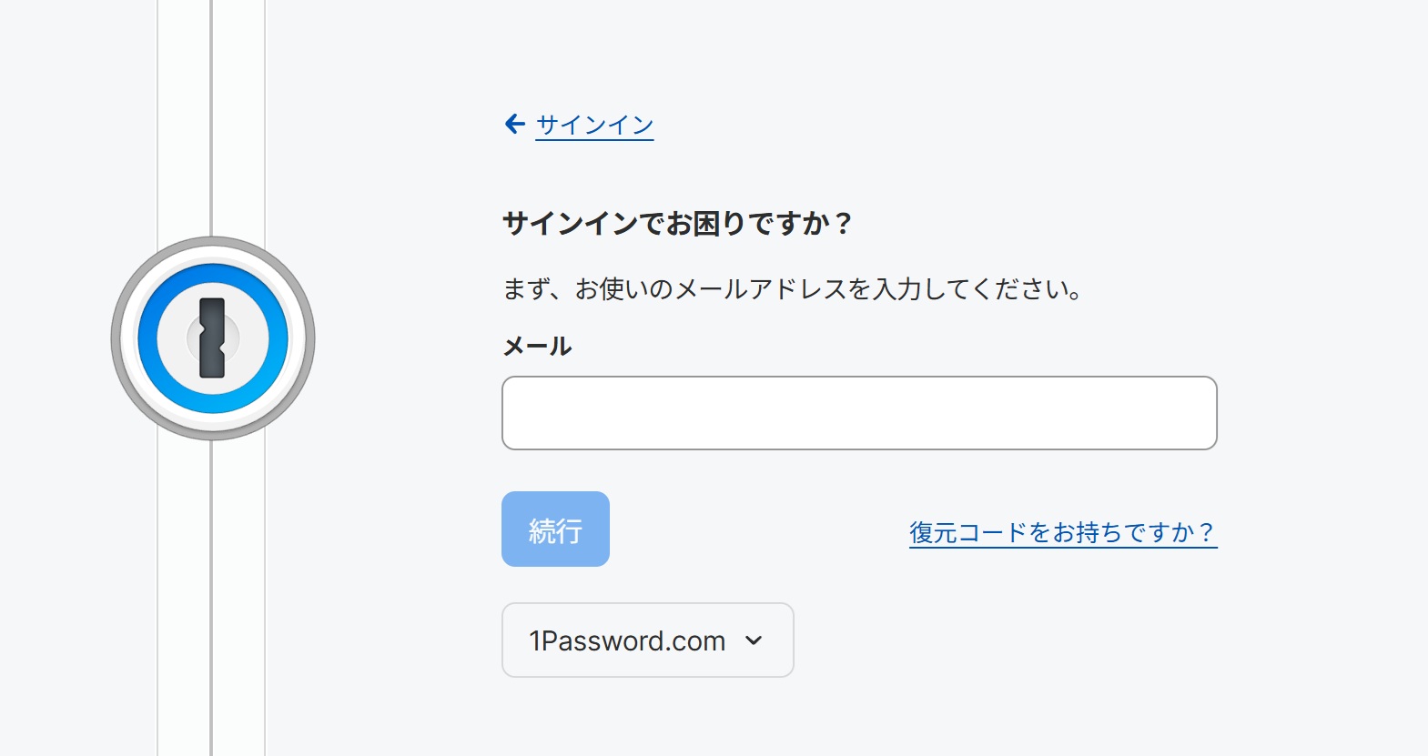 Googleでヒットさせるには、「1password.com login」と英語で検索する必要がありました。
